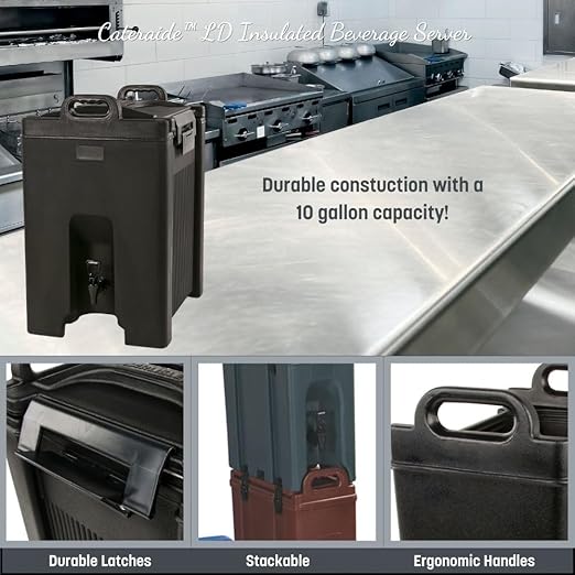 Carlisle FoodService Products Cateraide Insulated Beverage Dispenser with Handles for Catering, Kitchen, and Restaurants, Plastic, 10 Gallons, Black