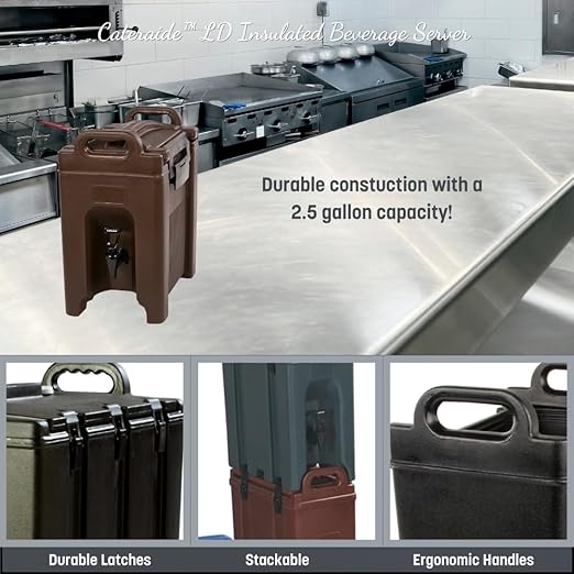 Carlisle FoodService Products Cateraide Insulated Beverage Dispenser with Handles for Catering, Kitchen, and Restaurants, Plastic, 2.5 Gallons, Brown