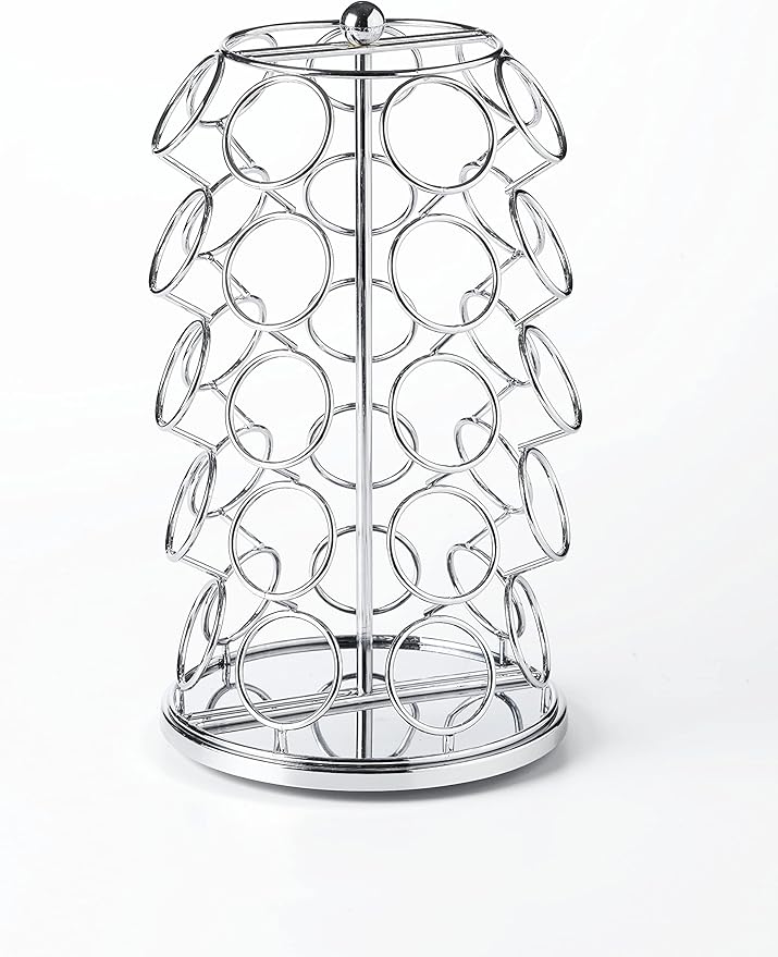 - MODERN DESIGN: The modern, chrome-plated steel style looks fantastic on the countertop in the kitchen, your dorm room, or in the office coffee bar. Even the heaviest of coffee drinkers will want this carousel to easily brew a cup of coffee.