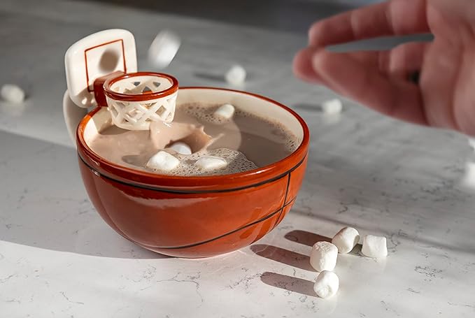 - Interactive 16oz Basketball Mug: Shoot marshmallows, cereal, or snacks into the mini basketball hoop - a fun way for kids to enjoy their breakfast, hot chocolate, popcorn, soup, ice cream or frozen yogurt