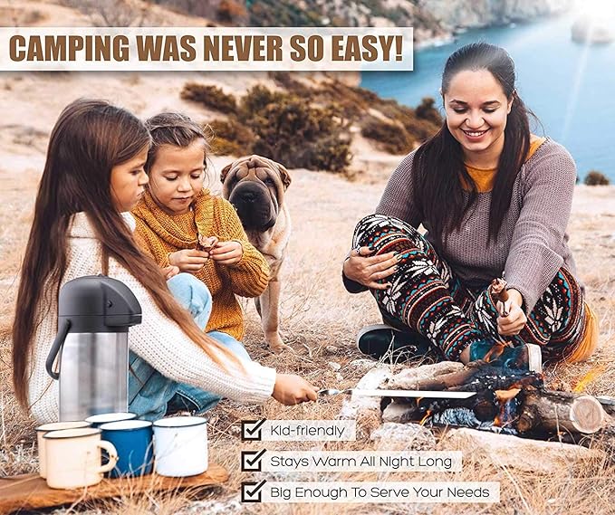 - DISPENSES EASILY AND QUICKLY: With the pump-action top design, this coffee dispenser with pump allows you to dispense your favorite beverage easily and safely with one press without lifting and tilting the entire airport, which greatly prevents the drinks from being overturned or leaked, and friendly to the elder and children.