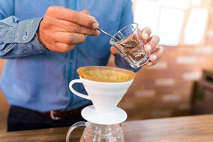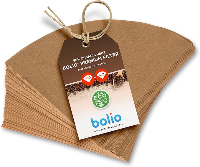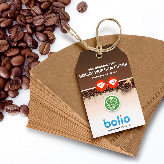 - CONE SHAPED FILTERS: The Bolio Premium Paper Filters are designed to allow for the perfect pour over style cup of coffee. Cone shaped filters are much better at extracting the full flavor of your coffee compared to more commonly used flat-bottom filters. Our premium V60 size paper filters fit all leading brand pour over coffee carafes.