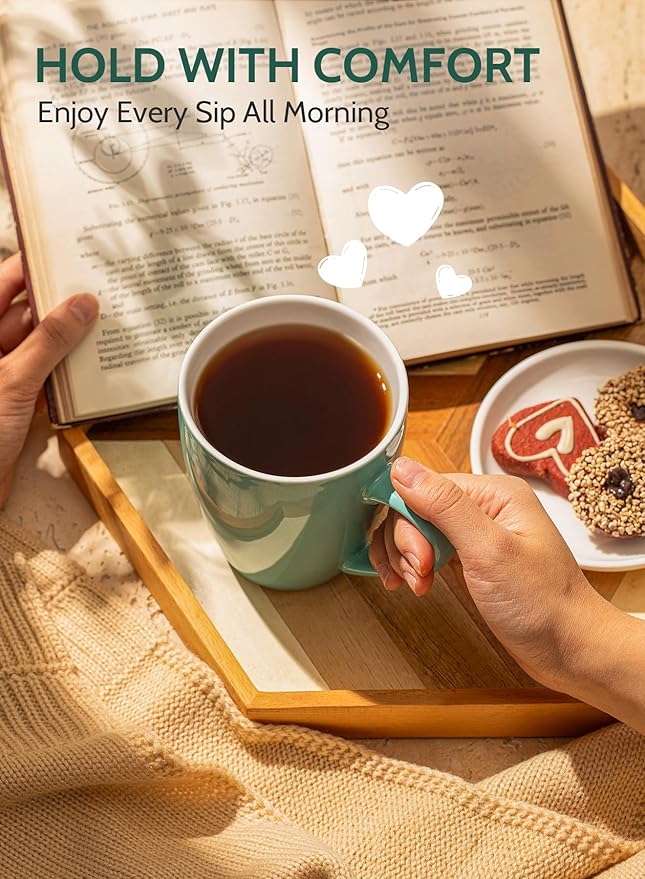 - ENJOY YOUR DRINK WITH EASE: Our coffee mugs redefine comfort with a spacious design and a large handle, ensuring a cozy grip. Savor the enhanced taste of your tea or coffee as the mug sits comfortably in your hands. Crafted with ergonomic precision, our mugs offer a stylish and secure grip, the wide mouth is perfect for indulging in hot lattes, complemented by a large handle that holds 16 ounces of goodness. Choose ease and style for every sip.