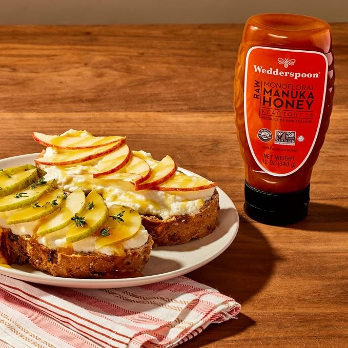 Wedderspoon Raw Manuka Honey, Unpasteurized, Genuine New Zealand Honey, Multi-Functional, Non-GMO Superfood, Convenient Squeeze Bottle, KFactor 16, 12 Ounce