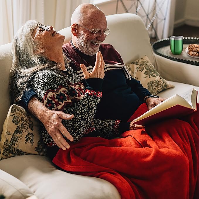- LUXURY PLUSH SUPER SOFT BLANKET - The best Christmas gift sets include a cozy blanket like this one. Deep red, 50 x 70 inches; it is the perfect size to cover up with in bed or on the sofa in your Christmas pajamas to watch all your favorite holiday classics