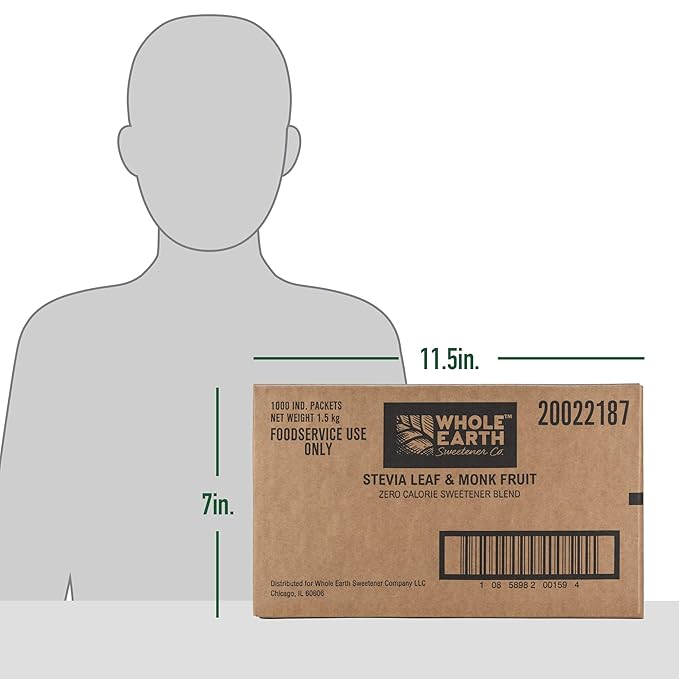- SUGAR PACKETS SUBSTITUTE: Each carton contains 1,000 packets of delicious WHOLE EARTH SWEETENER Stevia and Monk Fruit Natural* Sweetener, and is ideal for any business—from office and workplace break rooms to restaurants, cafés and coffeeshops