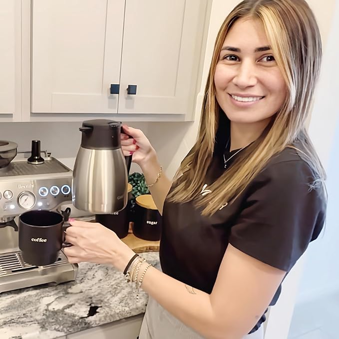 - QUALITY & DURABILITY: Constructed with BPA Free detachable lid and durable 304 food grade stainless steel interior and exterior, our vacuum thermal carafe is perfect used as a tea/coffee thermal carafe dispenser, milk carafe, creamer carafe, juice, wine, hot water pitcher.