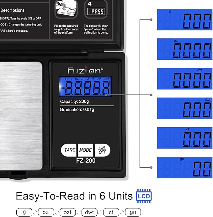 - Pocket Scale: 6 Units of Measurement - grams (g), grains (gn), ounces (oz), troy ounces (ozt), pennyweights (dwt), and carats (ct). Back-lit LCD Display, Fast Reading.