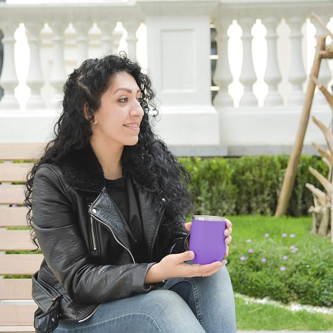 MEWAY 12oz/12 Pack Wine Tumbler Glasses with Lid -Double Wall Vacuum Stainless Steel Travel Tumbler Mug,Stemless Insulated Wine Cup for,Coffee,Cocktails,Gifts (Purple,Set of 12)