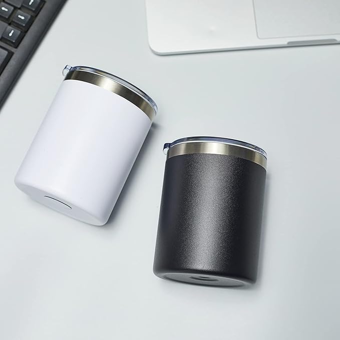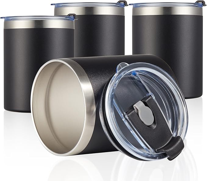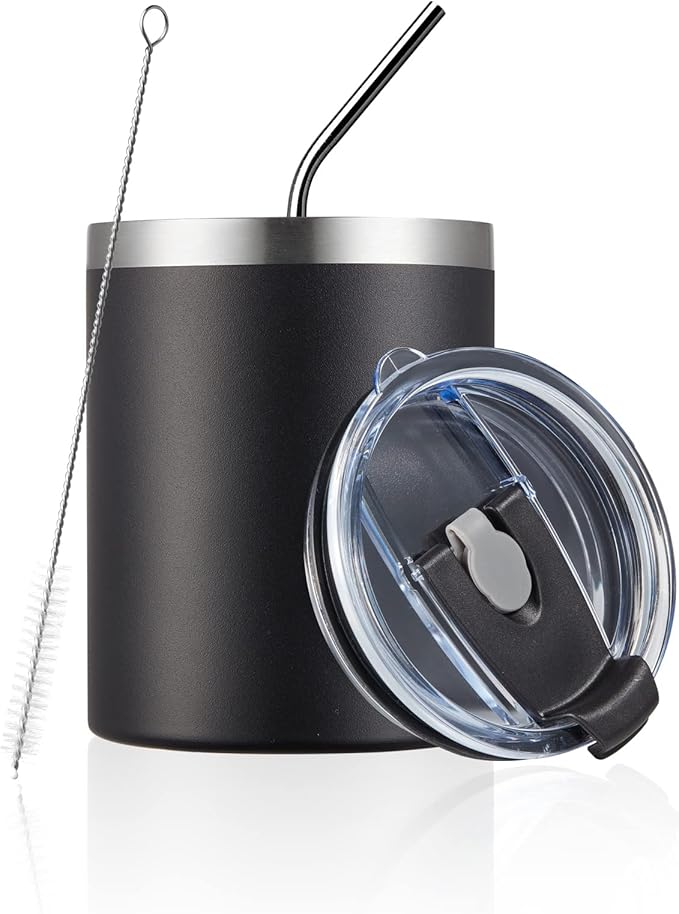 MEWAY 12 oz Lowball, Tumbler Stainless Steel Double Wall Vacuum Insulated Mug with Straw and Lid, Cleaning Brush ,Durable Powder Coated Insulated Coffee Cup for Cold & Hot Drinks (Black, 1 Pack)