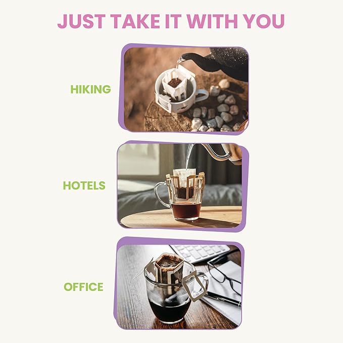 - Portable Pour-Over Perfection - Mondo Drip Coffee simplifies your coffee ritual. This compact, disposable coffee drip bag is your go-to choice for camping, travel, the office, or home brewing. Just add hot water!