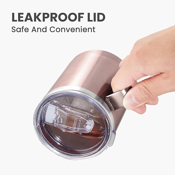 MEWAY 12oz Coffee Mug With Handle and Sliding Lid,Stainless Steel Travel Tumbler Cup with Handle,Double Wall Vacuum Insulated Camping Cup for Hot & Cold Drinks Tea (Rose Gold,Set of 1