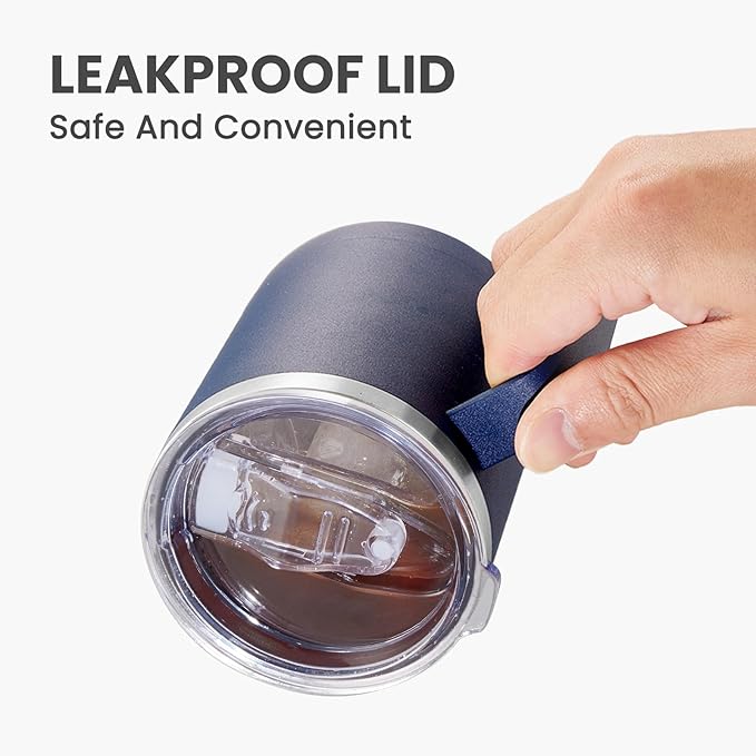 MEWAY 12oz Coffee Mug With Handle 4 Pack Bulk,Stainless Steel Insulated Travel Tumblers With Sliding Lid,Double Wall Vacuum Camping Cup for Hot & Cold Drinks Tea (Navy,Set of 4)