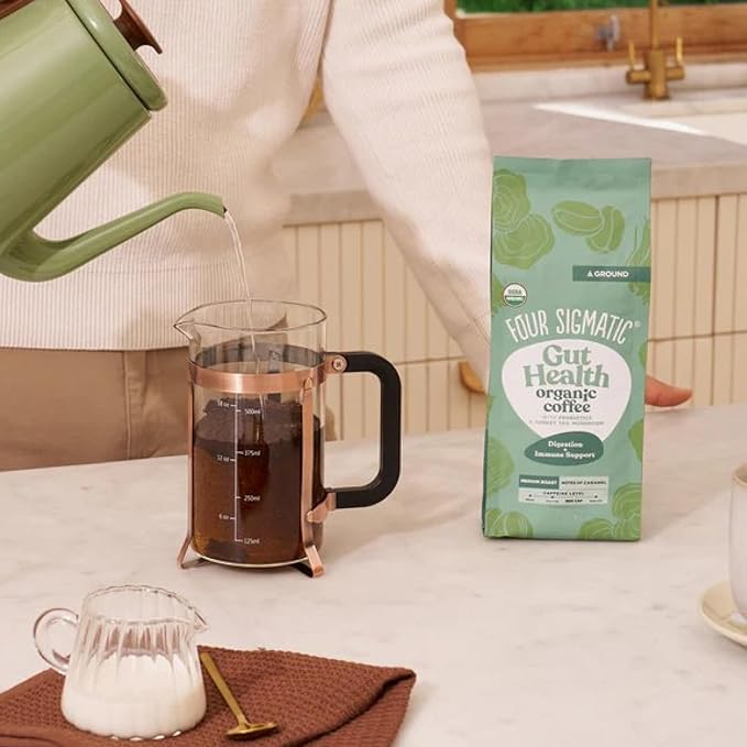 Four Sigmatic Gut Health Organic Ground Coffee | Medium Roast, Immune Boosting Probiotic Mushroom Coffee with Chaga & Turkey Tail for Gut Health & Immune Support | 12oz Bag