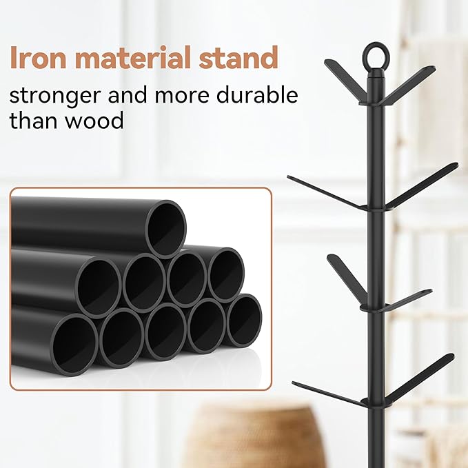- 【Creative Solid Iron Mug Tree】- The mug holders are made of durable, Long-lasting metal.Hooks are tilted upwards to securely secure the mugs to help hold the cup in place.