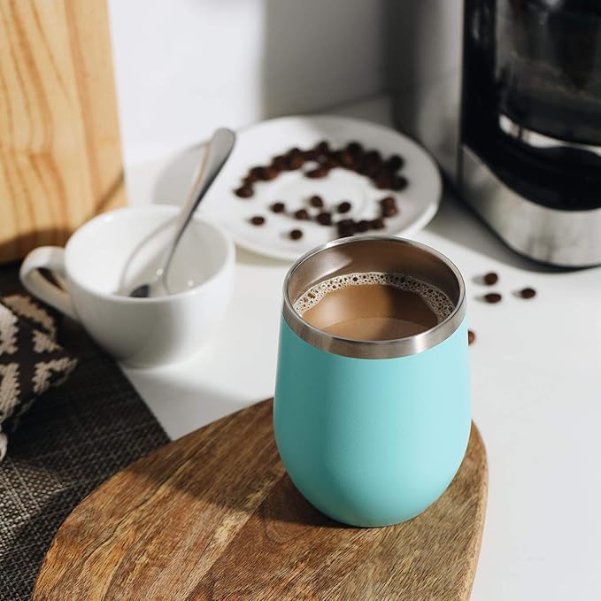 - [Advanced Insulation Technology:]Double wall vacuum insulated prefection in a stemless wine tumbler made from lifelong Stainless Steel! Set off on your refreshing picnic, hiking or camping adventures with your water, wine, or cocktail icy-cold for 9 hours or your coffee and tea scalding-hot for over 3 hours!