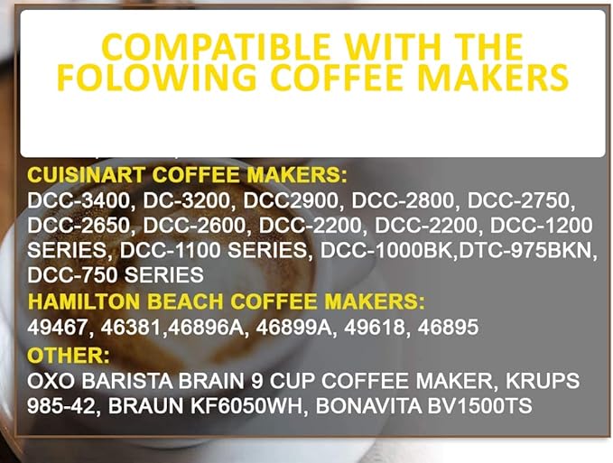 - PERFECT FIT - Compatible with most 4 6 8 10 12 cup coffee filters and designed to fit Cuisinart Hamilton Beach coffee makers and brewers. PLEASE ENSURE THAT FILTER DIMENSIONS: 4.75 INCH TOP DIAMETER AND 3.5 INCH HEIGHT WILL PROPERLY FIT IN YOUR COFFEE MAKER'S FILTER COMPARTMENT.