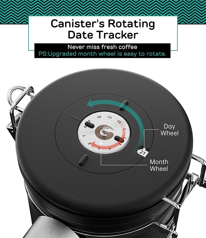- Track Freshness: Log purchase or expiry date with the calendar date wheel, reduce waste and stop trashing precious coffee