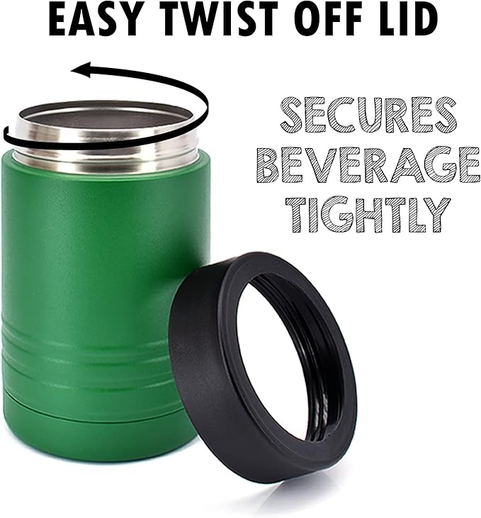 Clear Water Home Goods - 12 oz Stainless Steel Double Wall Vacuum Insulated Can or Bottle Beverage Cooler - Powder Coated Green - 6 Pack