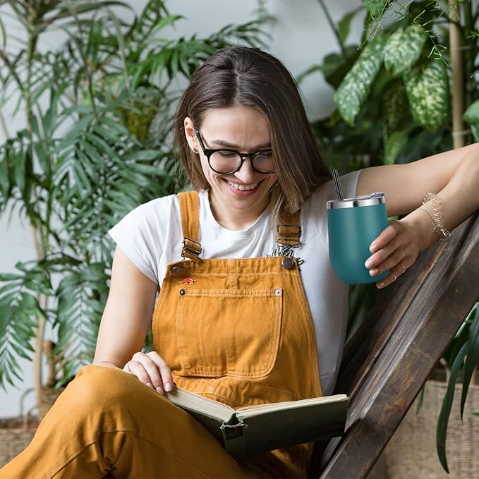 - Fashionable and Reusable: The 12oz wine tumbler bulk are made of 18/8 food grade stainless steel with non-slip frosted coating,no metallic taste. It has an eye-catching and fashionable appearance and is more solid and safer than other ordinary glasses. It is equipped with a BPA-free lid And the reusable plastic straw can be selectively used for more drinks