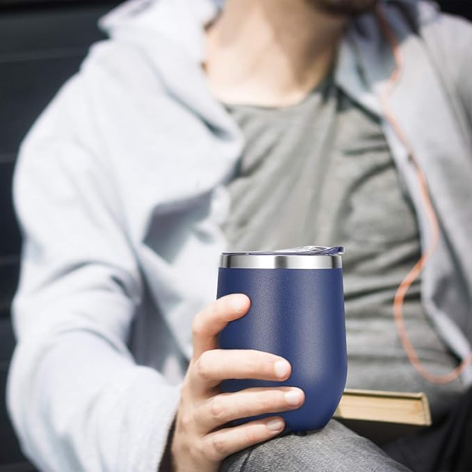 - Fashionable and Reusable: The 12oz wine tumbler bulk are made of 18/8 food grade stainless steel with non-slip frosted coating,no metallic taste. It has an eye-catching and fashionable appearance and is more solid and safer than other ordinary glasses. It is equipped with a BPA-free lid And the reusable plastic straw can be selectively used for more drinks