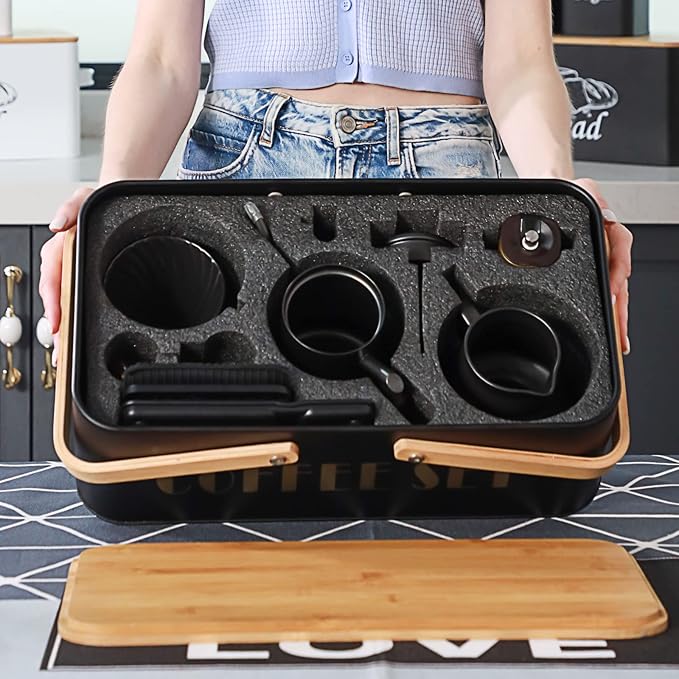 Pour Over Coffee Kit, Coffee Maker Set, All in One Hand Drip Coffee Set, Coffee Grinder Manual Set, Ideal for Anniversary Birthday Gift
