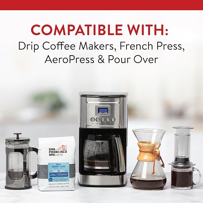 SF Bay Coffee DECAF Gourmet Blend 28 oz Bag, Ground Medium Roast, Swiss Water Process Decaffeinated