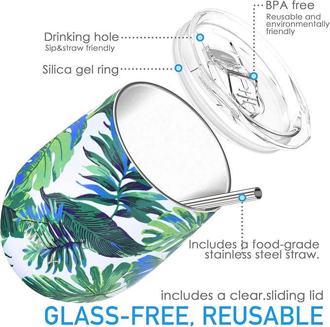 - PERFECT CAPACITY AND HIGH QUALITY - 12 oz capacity can hold great for coffee, wine, tea, cocktails, champagne, beer and more. This stainless steel insulated travel cup is lightweight and portable to take on your outdoor adventures. If you have any problem with our stemless vacuum insulated wine tumbler with lid, please contact us at anytime