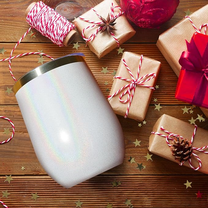 - [Package included]4*12oz glitter wine tumbler,4*splash proof cover with hole, 4*unbreakable steel straw, 2*straw brush,and 1*beautiful gift box.If you are short of accessories, please contact us in time.