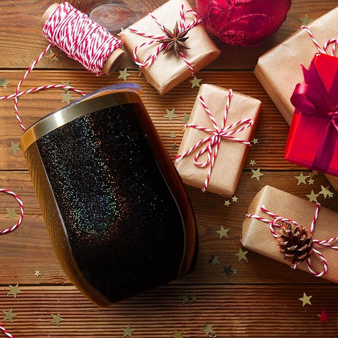 - [Package included]4*12oz glitter wine tumbler,4*splash proof cover with hole, 4*unbreakable steel straw, 2*straw brush,and 1*beautiful gift box.If you are short of accessories, please contact us in time.
