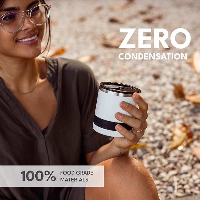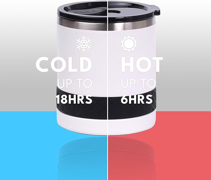 Elemental Recess Lowball Tumbler, 10oz Triple Wall Stainless Steel Cup with Non-Shattered Tritan Lid, Insulated Whiskey Glass, Insulated Coffee Tumbler Mug for Hot & Cold Drinks - White
