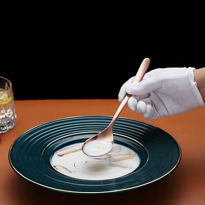 - 【Product Parameter】: Set of 6 Pieces copper 8.1" modern design sturdy high quality dinner spoons.Perfect for special events, parties, birthday, wedding ect. Also perfect for daily use.