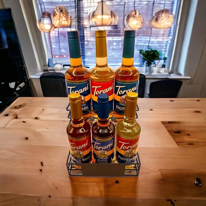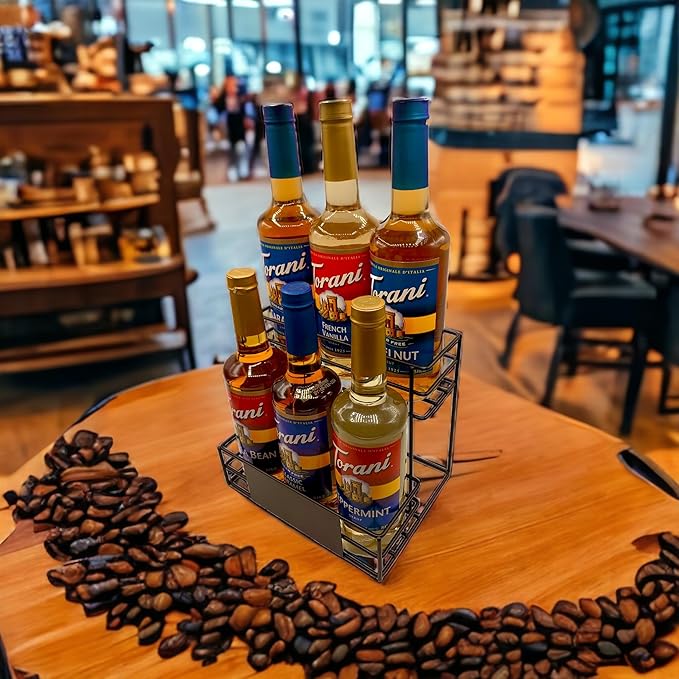 - Elegant syrup rack for coffee bar, store your favorite syrups in this tasteful syrup holder and sweeten your beverages with multiple flavors, make your home brewed coffee more professional while keeping your coffee bar organized in your tabletop with this useful coffee syrup holder, perfect for small coffee and tea service areas, makes your coffee station look like a professional coffee shop in a luxurious hotel lobby or restaurant while saving space