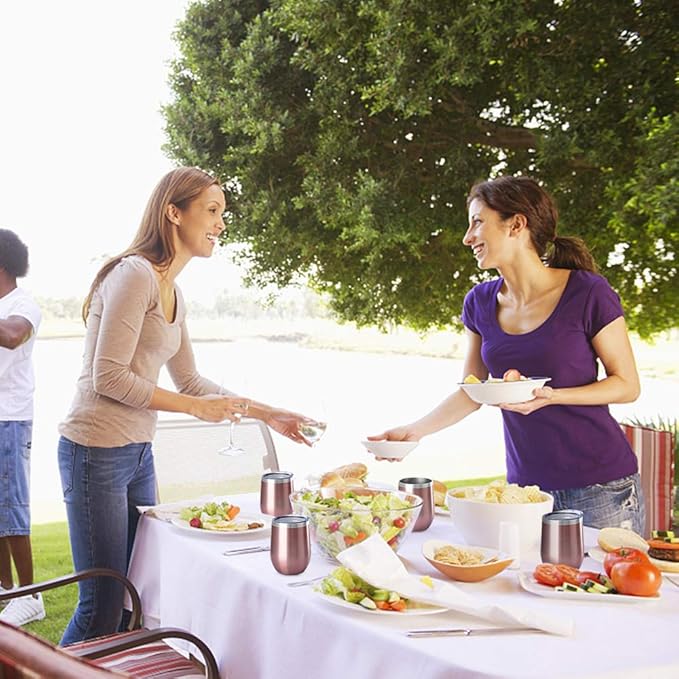 - [Advanced Insulation Technology:]Double wall vacuum insulated prefection in a stemless wine tumbler made from lifelong Stainless Steel! Set off on your refreshing picnic, hiking or camping adventures with your water, wine, or cocktail icy-cold for 10 hours or your coffee and tea scalding-hot for over 8 hours