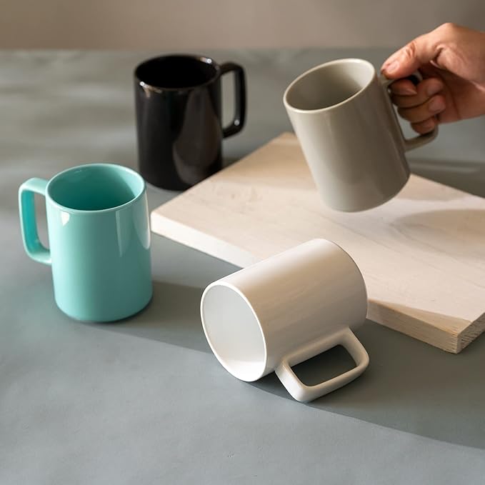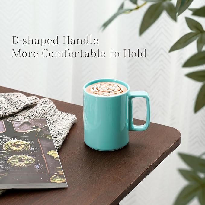 E-liu Porcelain Tea Mugs Coffee Mug Set, Large 15 Ounces Cups for Coffee, Tea, Cocoa, and Mulled Drinks, Set of 6, Turquoise