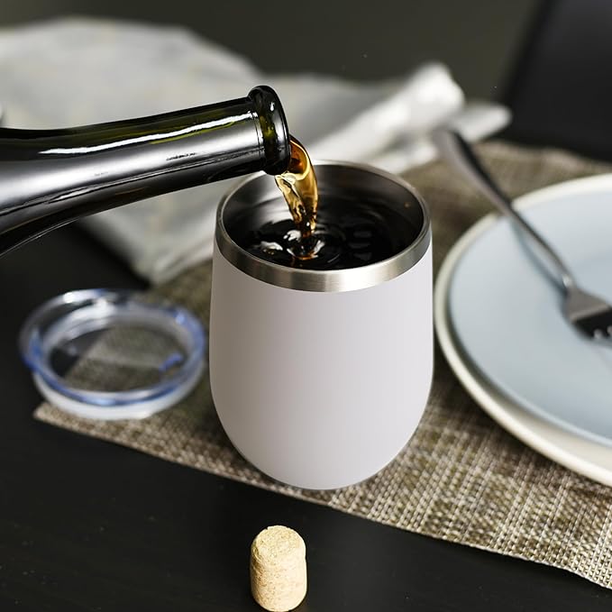 DOMICARE Stainless Steel Wine Tumbler Bulk with Lid, Personalized White Insulated Tumblers Set, 12oz Travel Coffee Cups Pack of 16
