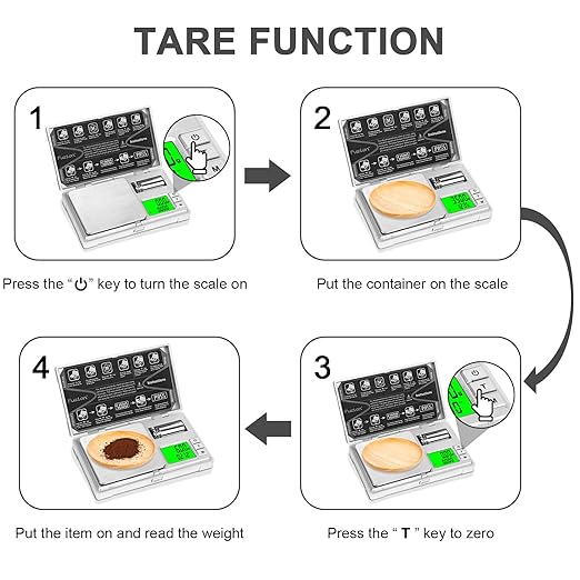 - Tare Function & Easy Calibration: The pocket scale is equipped with a convenient TARE function, allowing you to weigh items in containers without including their weight. Simply place the container on the scale, press the tare button, and the display will reset to zero, giving you precise measurements. The scale also supports easy calibration to ensure ongoing accuracy.