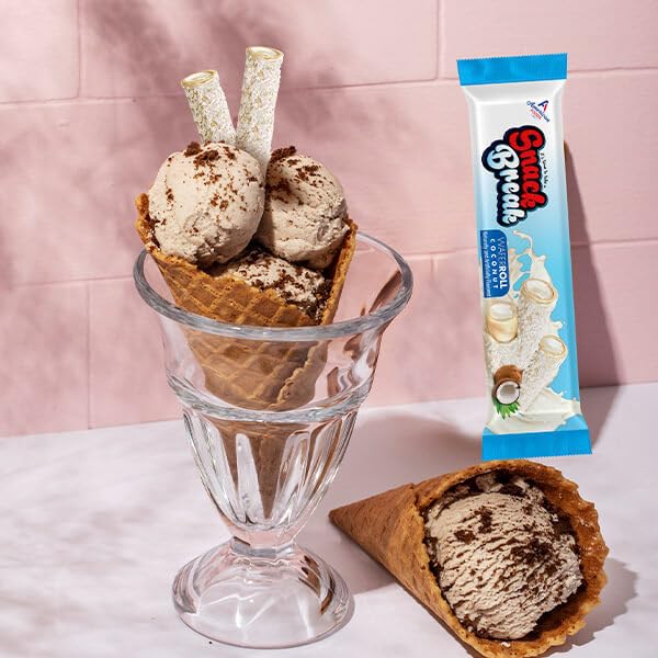Snack Break Coconut Wafer Rolls, Rolled Wafer Cookies, Coconut Coated Delicious Snack, Individually Wrapped, Crunchy Sticks for On-the-Go, Coffee, Tea, Pack of 24