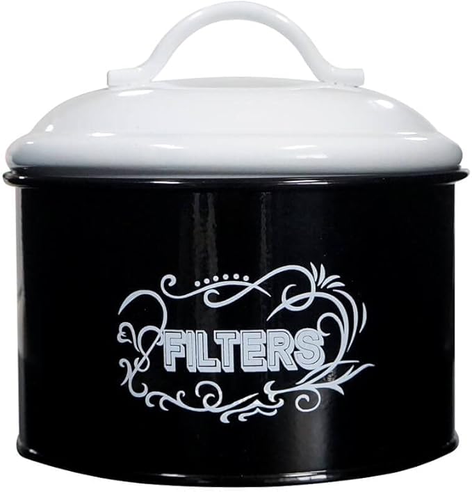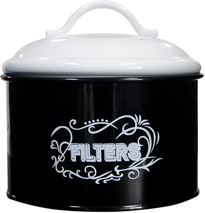- Elegant and understated:High gloss lid with matte body,rustic style black enamelware coffee basket design filter jar,can be used as room decor and storage.