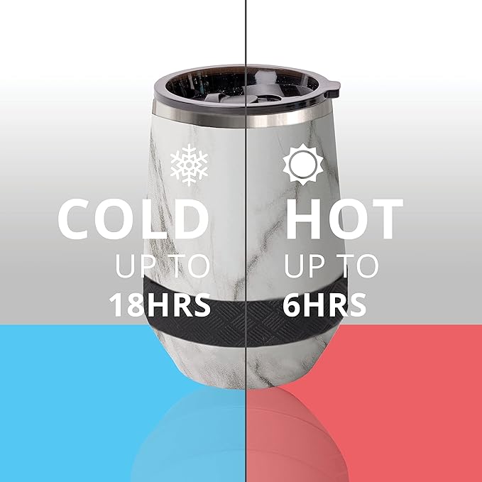 Elemental Recess Wine Tumbler - Triple Wall Insulated Stainless Steel Coffee Mug for Hot & Cold Drinks - Portable Cup with Shatterproof Sip Lid for Camping, Outdoor & Travel - 10oz - White Marble