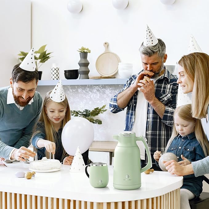 IDEUS Thermal Coffee Carafe 68oz (2,000ml), Stainless Steel Double Wall Insulated Vacuum Flask, Water Jug Coffee Server and Beverage Dispenser, Heat and Cold Retention (Avocado, 68oz (2,000ml))