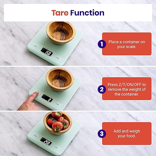 - Tare Function: Remove the weight of any container to get more precise results