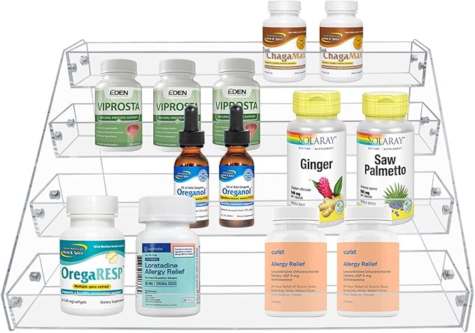 - MULTIPLE FUNCTIONS: The acrylic tiered spice racks allows you to easily locate and obtain the items you need; It can be used to storage and organize spice jars, sauces, bottles, medicine bottles, etc