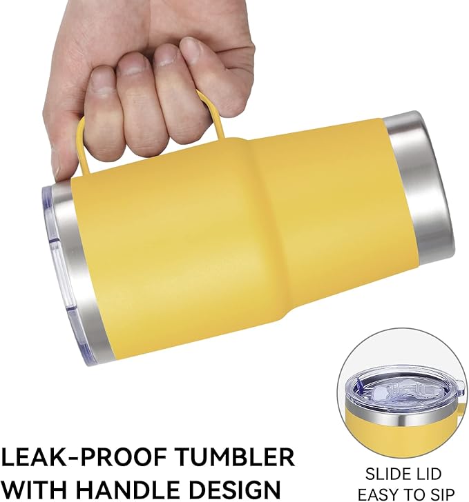 VEGOND 20 oz Tumbler Bulk with Handle Lid and Straw, Stainless Steel Insulated Travel Coffee Mug Set, Spill Proof Double Wall Metal Tumblers Cups, Yellow 6 Pack