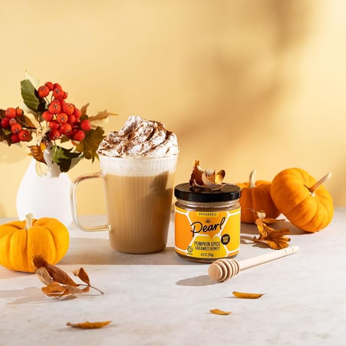 Pearl Honey Spreads - Organic Pumpkin Spice Flavored Creamed Raw Honey - Chemical Free, Dairy Free, Soy Free & 100% Naturally Flavored | 8.8oz Jar
