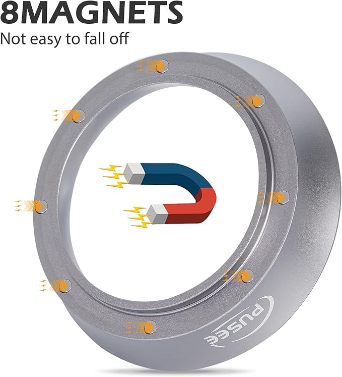 - 【The funnel with Magnetic Design】anodized aluminum ring has 6 magnetic points,can improve stability and effectively prevent the powder from spreading.you will be delighted at the simplicity of the application. Place it on your portafilter and it will lock into place instantly, convenient to place powder.