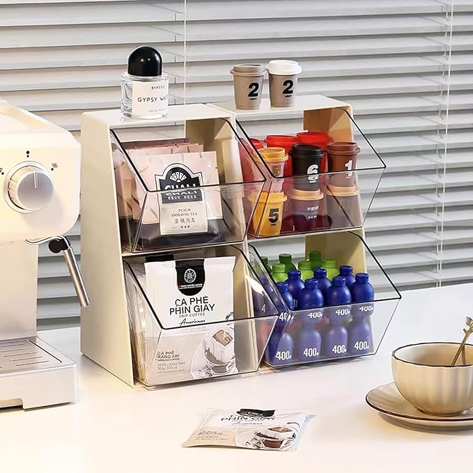 - 【Transparent Drawers for Easy Access】: Clear acrylic construction lets you instantly spot tea bags, coffee pods, or snacks—no more rummaging through cluttered containers. Open drawer design makes grabbing items effortless