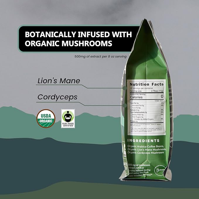 - EVERYDAY HEALTH RITUAL: Peak State is botanically infused with organic ingredients for daily wellness in your life. Adaptogenic mushrooms offer a less jittery coffee experience that supports immunity, cognition, and help to de-stress.