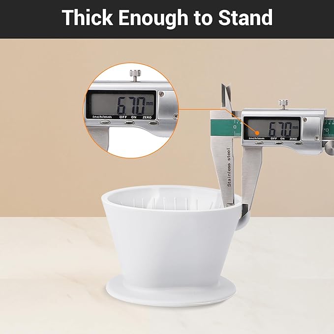 - Great for Single Coffee Maker --- The nice and thick Segarty silicone coffee filter cup is about 300ml/10oz, nice for single mug. The mouth diameter: 4.2”/10.7cm; Flat base diameter: 3.8''/9.8cm; Height: 3.1”/8cm. Fits #2 paper coffee filter cone. Widely suitable with coffee cone filter holder for most mugs & kettles. Also with 3 holes at the flat bottom, its dripping is slower than the plastic, single-hole drippers which maximizes the flavors with greater flexibility and room for brewing.