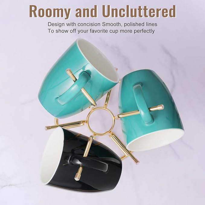 - Large Size Mug Holder: Measuring 6.5"L x 6.5"W x 12"H, this coffee mug tree can store 6 large mugs, freeing up cupboard space and keeping countertops orderly. Its concise, smooth polished lines make it great for displaying seasonal or beautiful mugs without clinking.